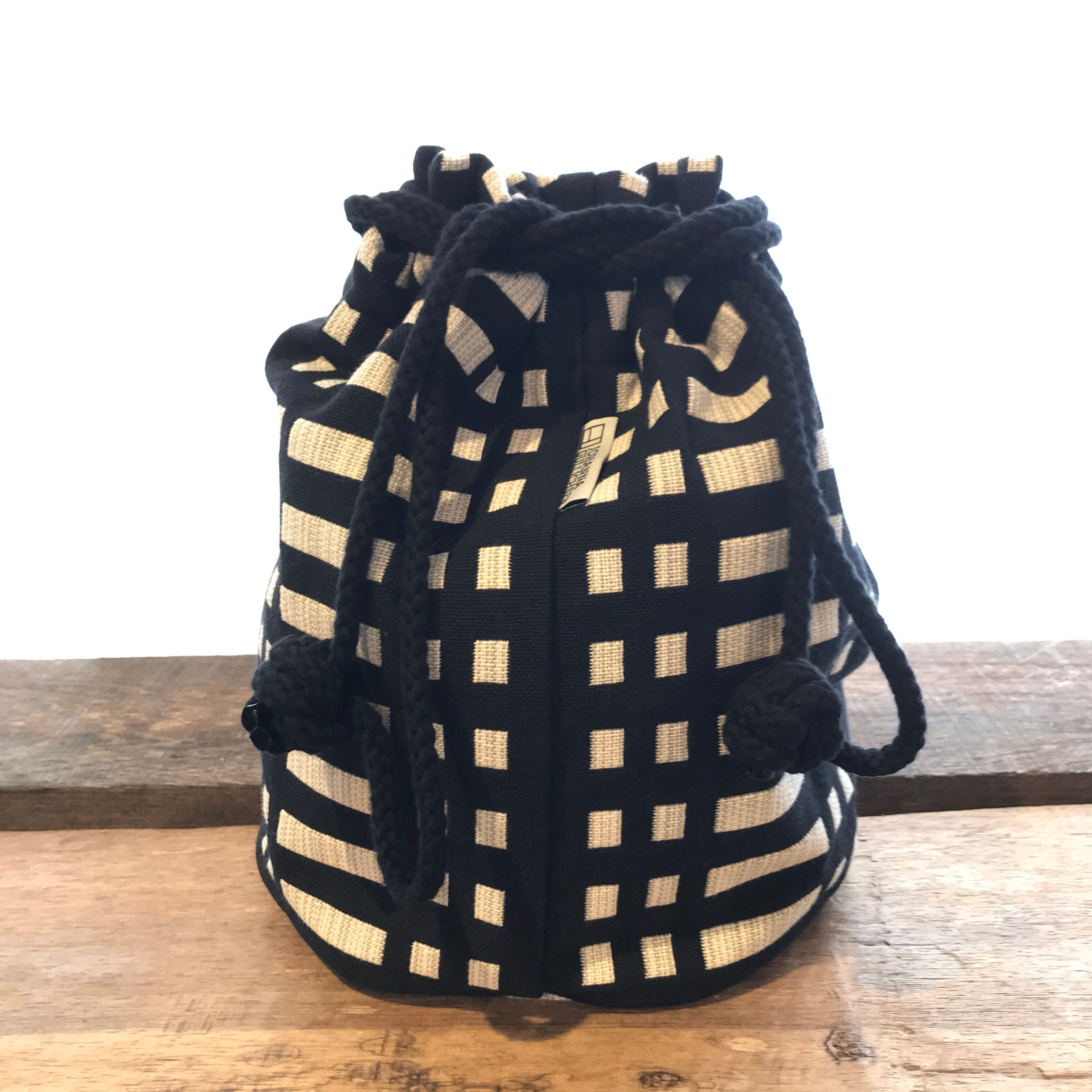 巾着のようにキュッと絞るストラップの丸い結び目も愛らしく、